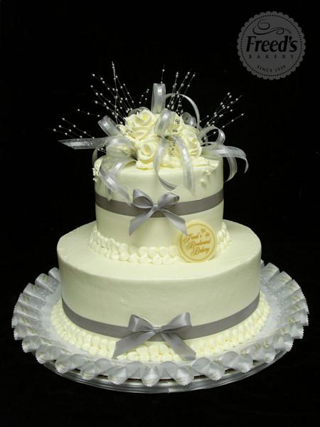 Get the perfect wedding cake without breaking the bank! Our deep silver design features elegant buttercream roses and a satin ribbon topper, making it a budget-friendly option for your special day. Don't settle for less, have your cake and eat it too!