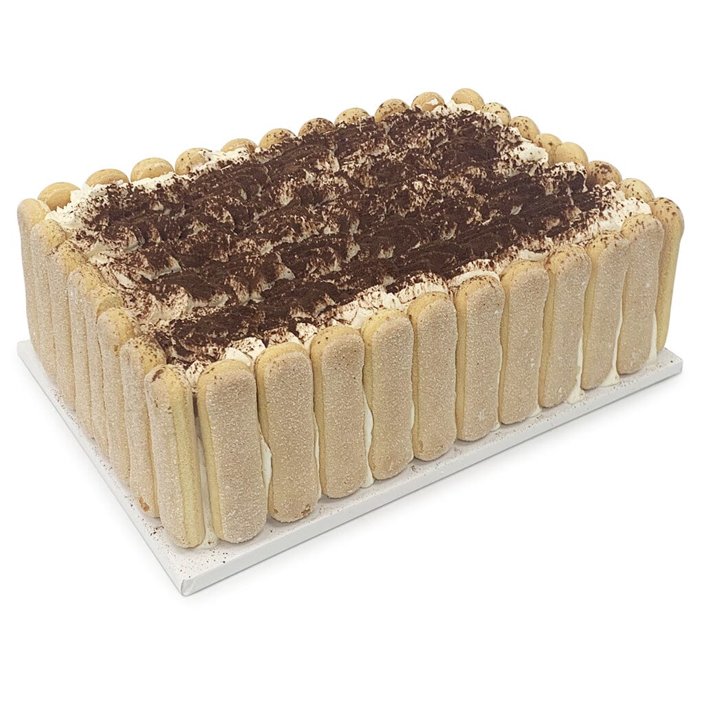 The best Tiramisu dessert cake in Las Vegas! Layers of white sponge cake soaked in espresso and brandy, filled with house made sweet mascarpone cream (made with our very own marsala wine sabayon) and iced with espresso blended whipped cream. Sprinkled with cocoa powder and surrounded in sugar crusted lady fingers.